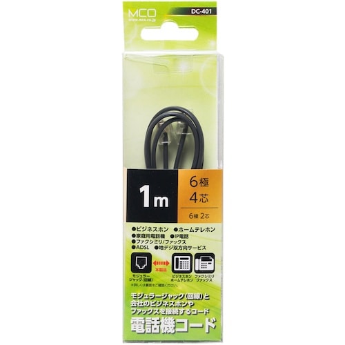 ナカバヤシ MCO 電話機コード 6極4芯 1m 黒 DC401BK 1Pk(1本) A04X-3482