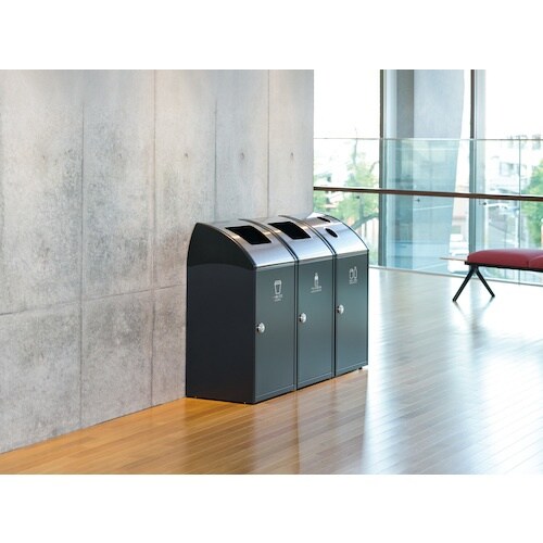 角が丸みを帯びている優しいデザインの屋内用のスチール製ゴミ箱です。投入口は錆に強いステンレス製です。収納量500mlのペットボトル約45本(目安)スタンダードタイプです。