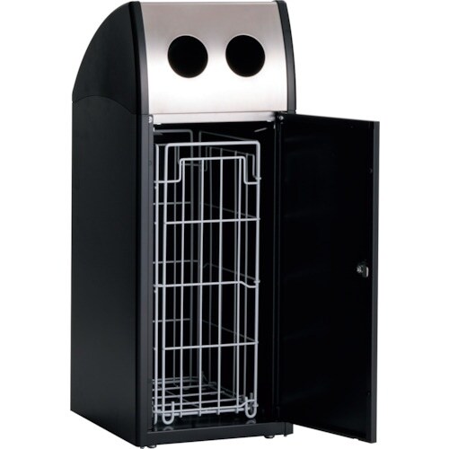 角を丸めたやさしいフォルムで様々な施設にマッチするスチール製ゴミ箱です。投入口は錆に強いステンレス製で、屋外仕様で雨が入りにくい構造です。 |