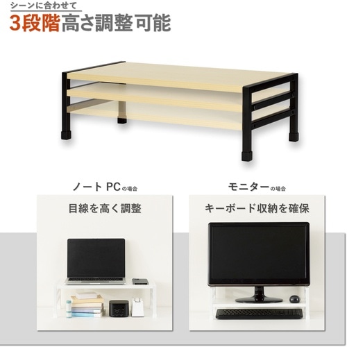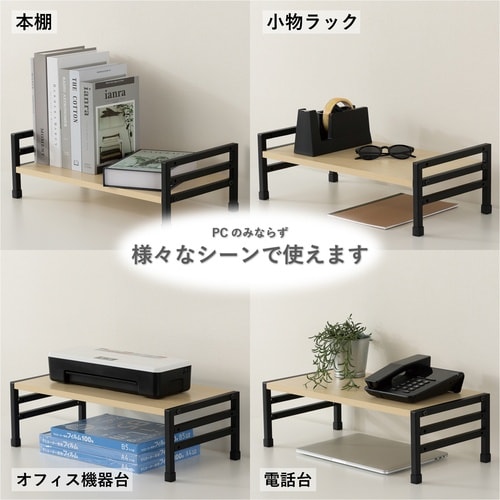 用途に合わせて高さを調節できる机上台です。台の内側の幅は470mmあるためキーボードも入れられます。机上スペースの確保に。