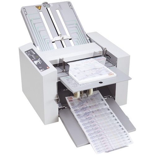 B7ーA3までの用紙に対応した紙折り機です。処理速度が5段階から選択でき、低速であれば「減音」で静かに作動します。搬送ベルトで送られるため、順番通りに紙折りができます。書類や図面の折り作業に。 |
