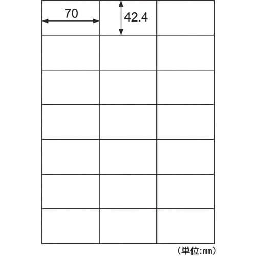 面付:21 | ラベルサイズ(mm)縦:42.4 | ラベルサイズ(mm)横:70 | 秤量(g・m2):179 | 用紙サイズ(mm):A4(210…