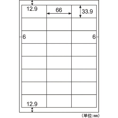 面付:24 | ラベルサイズ(mm)縦:33.9 | ラベルサイズ(mm)横:66 | 秤量(g・m2):179 | 用紙サイズ(mm):A4(210…