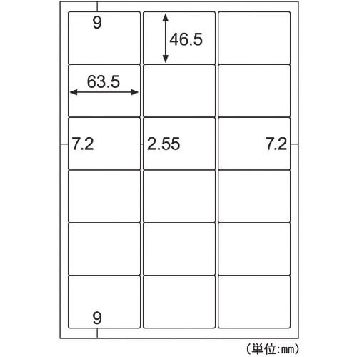 面付:18 | ラベルサイズ(mm)縦:46.5 | ラベルサイズ(mm)横:63.5 | 紙厚さ(mm):0.15 | ラベルのみの厚さ(mm):0…