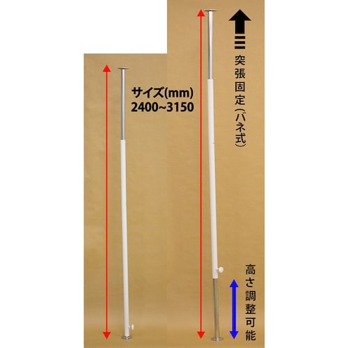 天井と床をバネの力で突っ張り、固定させる伸縮ポールです。専用の固定パーツやワイヤーネット、パンチングボードなどと組み合わせて、あなただけの便利なオリジナルラックを簡単に作ることが出来ます。 |