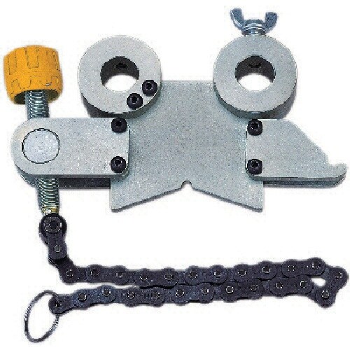 ポリエチレン管融着用クランプです。ESEI−10Nに取付けて使います。ポリエチレン継手とポリエチレンパイプを融着する際、対象材を固定するために用いる工具です。 |