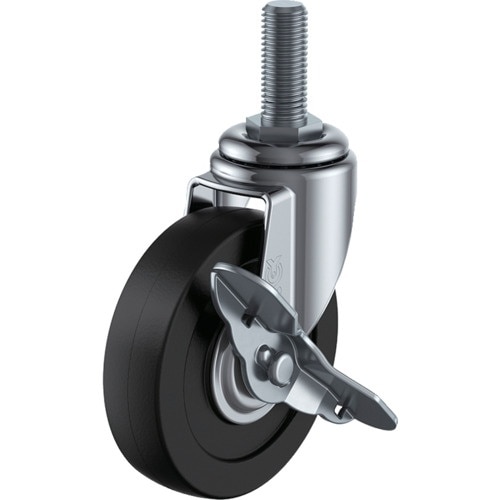 ユーエイ ねじ込み式 自在 キャスター 導電ゴム 車輪径100mm ストッパー付き Eタイプ ET−S型 ネジ寸法M12×35ピッチ1.75 ET100RHESM1235 1個