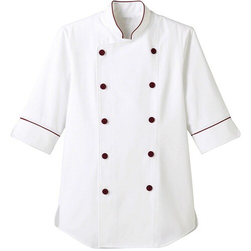 サーウ゛ォ サンペックス 七分袖ショップコート ホワイト*ワイン LL ET1138LL 1着 A04X-8099