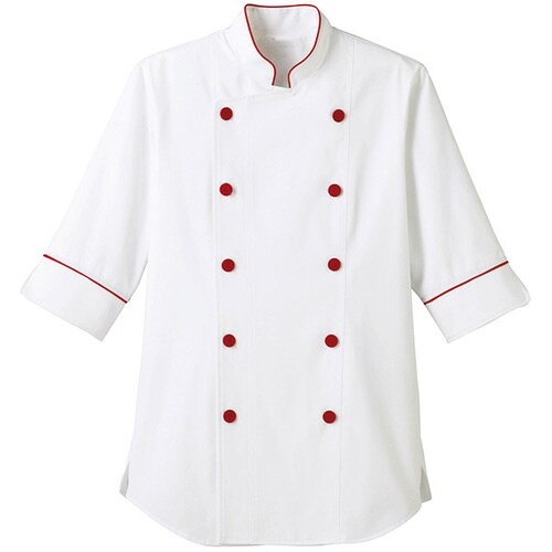 サンペックス 七分袖ショップコート ホワイト*レッ