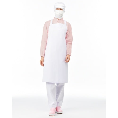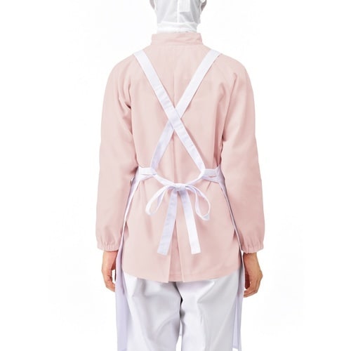 撥水加工付き給食サービス向けノーポケットエプロンです。軽量で着用時のストレスを軽減します。肩紐のズレを防止するために紐の角度、裏側のループ幅にこだわっています。水場作業に。 |