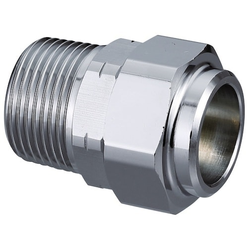専用ツバ出し工具不要でフレキ管に接続可。テーパおねじ(Rねじ)テーパおねじ部は管端コアに対応します。 |