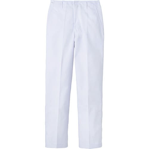 異物混入対策仕様のスタンダードの常温作業向けストレートパンツです。前開き金属ファスナー、両脇スラッシュ、右後片玉縁ポケットです。
