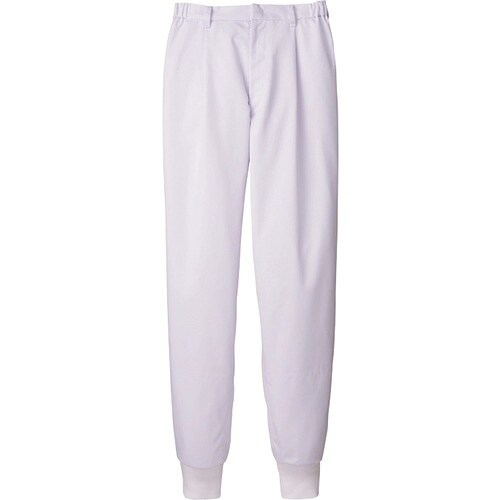 異物混入対策仕様のスタンダードの常温作業場向けホッピングパンツです。フロントセミオートコイルファスナー、ウエスト総ゴム、本体裾口はフライス、インナー裾口はゴム入りです。
