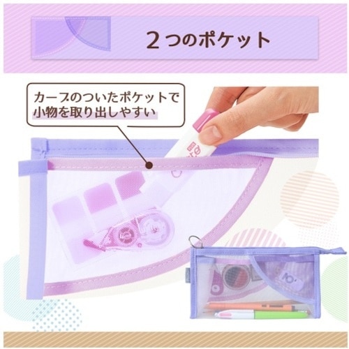 メッシュ素材で中身が透けて見えるケースです。筆記具と小物の持ち運び用に。