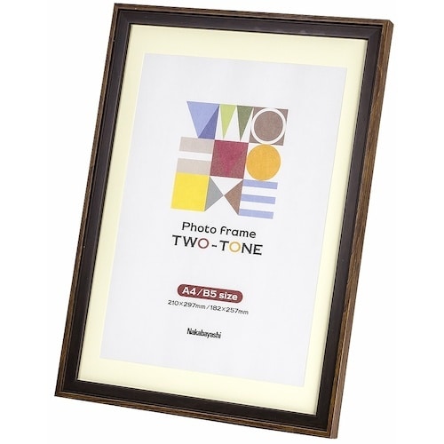 2種類の木目柄を合わせたツートンカラーのフォトフレーム便利なマット台紙付。2種類のサイズに対応できます。 |
