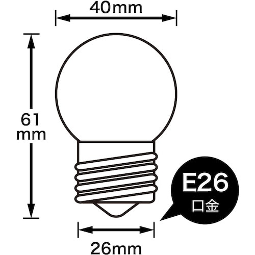 外径(mm):40 | 全長(mm):61 | 消費電力(W):7 | 口金:E26 | 定格寿命(時間):2000 | タイプ: ベビーボール球 |…