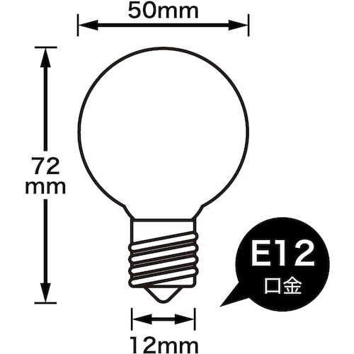外径(mm):50 | 全長(mm):72 | 消費電力(W):40 | 口金:E12 | 定格寿命(時間):2000 | ガラス:クリア | 単位:…