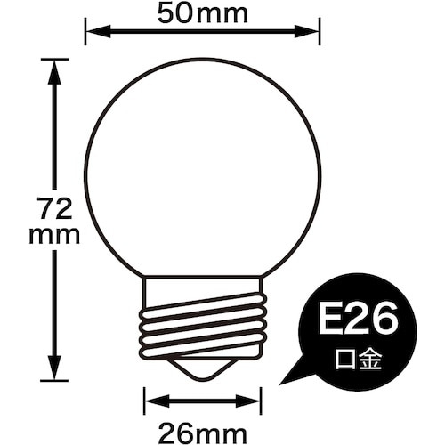 外径(mm):50 | 全長(mm):72 | 消費電力(W):25 | 口金:E26 | 定格寿命(時間):2000 | ガラス:ホワイト | 単位…