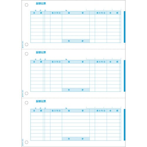横(mm):210 | 縦(mm):297 | その他仕様:振替伝票・振替伝票・振替伝票 | 単位:1Pk(500枚)