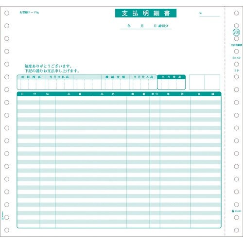 用紙サイズ(mm):9 1・2×9 | その他仕様:支払明細書・支払明細書 | 単位:1Pk(200枚)