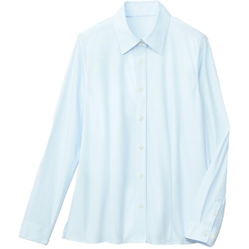 しなやかでトロンとした肌さわりが心地いいベーシックな長袖ブラウス。伸縮性がありシワになりにくく、お手入れが簡単なニット素材です。廃棄衣料から循環させたリサイクル糸を使用したエコ素材。 |