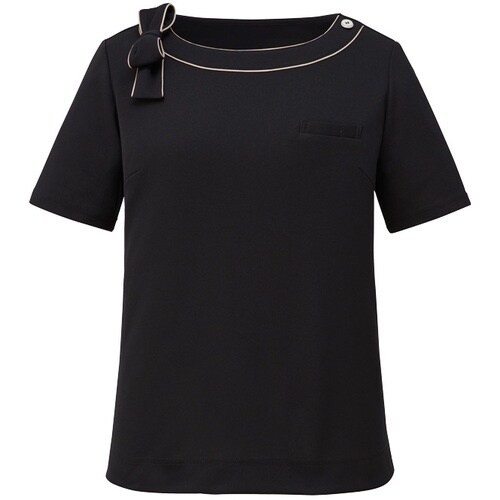 キレイな綾目のカルゼ組織で、シャープな印象を与えるニット素材を使用したトップス。体のラインが出にくく、夏場汗をかいても安心です。