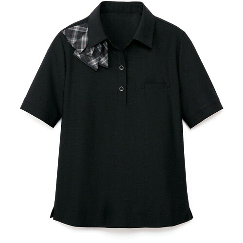 エレガントかつ甘すぎない、きちんと見えするポロシャツ。トラッドな華やかさを添えるチェック柄リボン付き。取り外し可能です。内側脇下に消臭テープ付き。