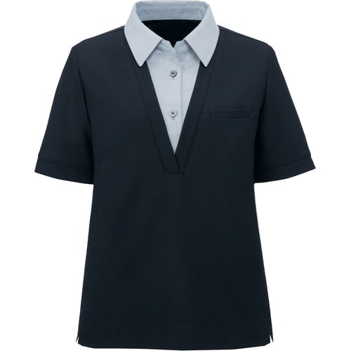 重ね着風のポロシャツ。内側脇下に消臭テープ付き。上質なハリ感がありながら、心地よいストレッチ性もありシワになりにくいニット素材。