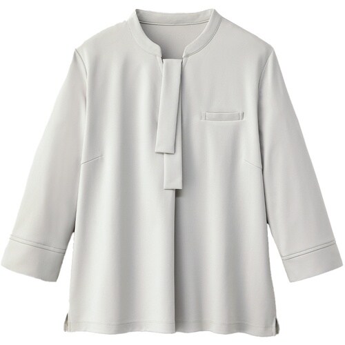 ジャケットやベストに合わせやすいデザインの七分袖カットソー。淡色でも透けにくい素材なので一枚でも美しく着用できます。ボウタイリボンは取り外し可能な2WAY仕様。 |