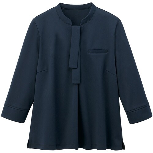 ジャケットやベストに合わせやすいデザインの七分袖カットソー。透けにくい素材なので一枚でも美しく着用できます。ボウタイリボンは取り外し可能な2WAY仕様。 |