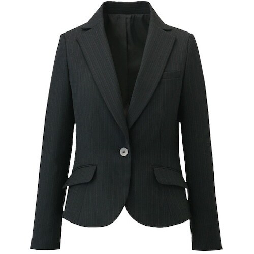 縦のストレッチで動きやすく、シワになりにくい仕立てが自慢のジャケットです。ストライブ柄の生地を採用しています。 |