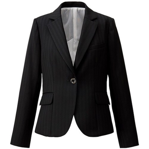太細ラインを表現した黒のシャドーストライプ柄で、上品な光沢感が特徴のジャケットです。抗菌防臭・消臭加工が施されているので、嫌な汗やタバコのニオイへも消臭性を発揮します。 |