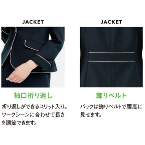 上質感のあるネイビーの無地素材に清潔感のある白いパイピングの入ったジャケット。くるみボタンやポケット部分のビットの金属使いがアクセント。 |