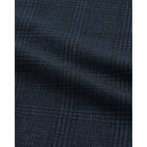 上品な落ち着きのあるグレンチェック柄。ウール調のポリエステル糸を使用した軽やかな素材は温かみのある風合いが特徴。立体的なシルエットで細く見えるのに程よいゆとりと着心地の良さがあるジャケット。 |