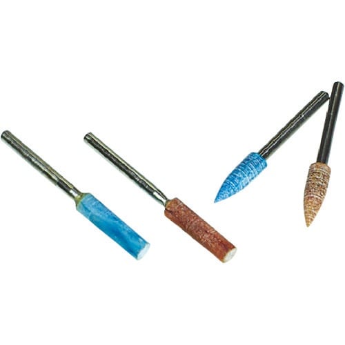 細くてもしっかり形状を保持し、折れづらい軸付きのニュースーパーストーンです。先端の形状をドレッサーで成形することで、通常のバーでは届かない所でも研磨が可能です。