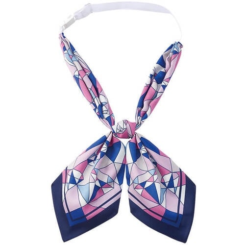 ジュエリー柄のリボンタイで、衿元を華やかに演出します。中央の結び目裏側にループを付けているので、ブラウスの台衿に付いているボタンに留め、固定できます。