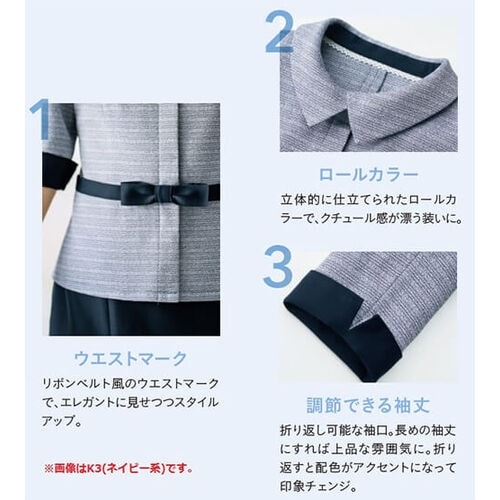 サーウ゛ォ GROW パウダリーツイード七分袖オーバーブラウスネイビー系19 GOBL1801K319 1着 A04Y-4749