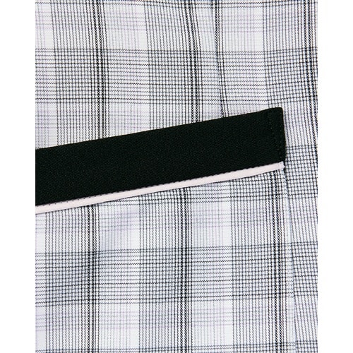 上品なチェック柄のオーバーブラウス。洗い替えに揃えやすいお手頃価格。脇下には臭いを抑えるデオファクター(R)の消臭テープを付けているので、汗をかいた時も安心です。 |