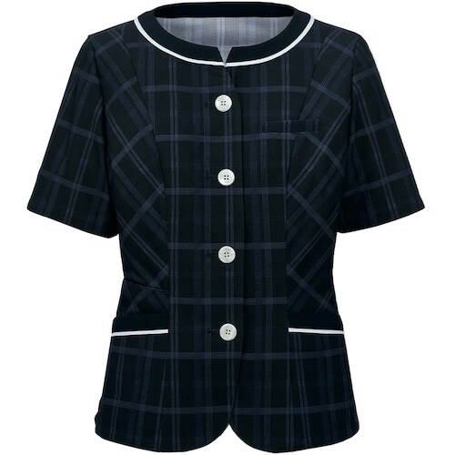 サーウ゛ォ GROW エコチェック・ニットオーバーブラウス紺系17 GOBL2301K517 1着 A04Y-4983