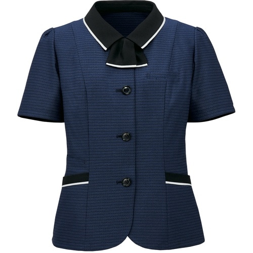 ブルーの濃淡の陰影やブラックの艶やかさがエレガントなオーバーブラウス。高通気度で風通しがよく涼しい着心地が続きます。リボンはスナップボタン式で取り外しが可能。