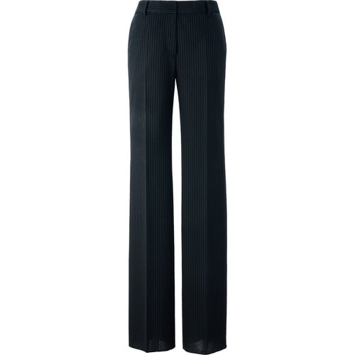 しなやかで軽い定番ストライプのニット。センタープレスが入っており、ベーシックながらもきちんとした印象のストレートパンツ。