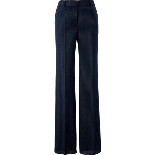 しなやかで軽い定番ストライプのニット。センタープレスが入っており、ベーシックながらもきちんとした印象のストレートパンツ。