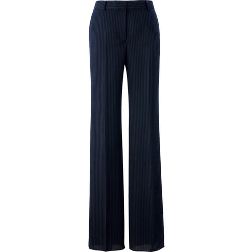 しなやかで軽い定番ストライプのニット。センタープレスが入っており、ベーシックながらもきちんとした印象のストレートパンツ。