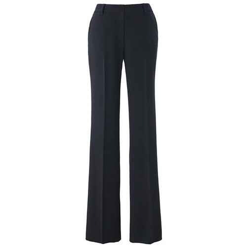 ウール調ポリエステルの軽量素材で仕立てたストレートパンツ。しなやかさと伸縮性の高さが特長です。ウエストや太もも部分はゆったりシルエットでウエストはヨークベルトで腹部の締め付けを軽減できます。 |