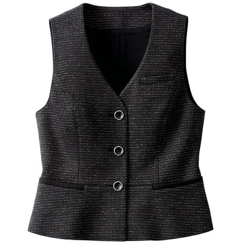 黒・紺どちらのボトムスにも合わせやすい、ブラックサテンを施したベスト。
