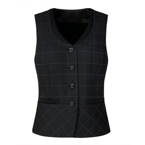ソフトで軽く適度なドレープ性のあるニット素材のベスト。ウィンドーペン柄のベストは同シリーズのピケニット(無地)のボトムスとのコーディネートがおすすめです。