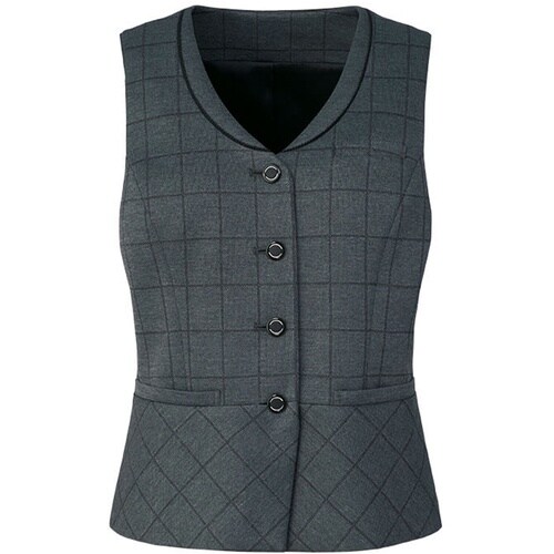 ソフトで軽く適度なドレープ性のあるニット素材のベスト。ウィンドーペン柄のベストは同シリーズのピケニット(無地)のボトムスとのコーディネートがおすすめです。