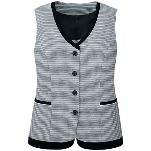 涼しげな色合いとさりげないボーダー柄が夏らしく爽やかなベスト。高通気度で風通しがよくシャリ感のある素材で涼しい着心地が続きます。着丈長めながら裾の配色の視覚効果で上半身をコンパクトに見せます。 |
