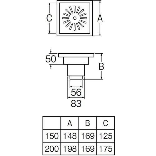 A(mm):198 | B(mm):169 | C(mm):175 | その他仕様:呼び50、75VUパイプ用 | 材質・仕上げ:ステンレス | 単位…