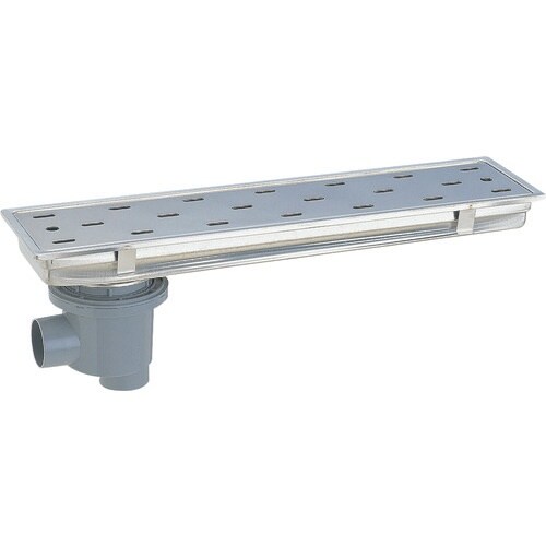 プレス成形品で床面に傾斜があり(750・900は除く)、水はけ良好です。縦排水、横排水の兼用タイプです。なお、縦排水は偏心(36mm)しますので施工性に優れています。150mmタイル用。